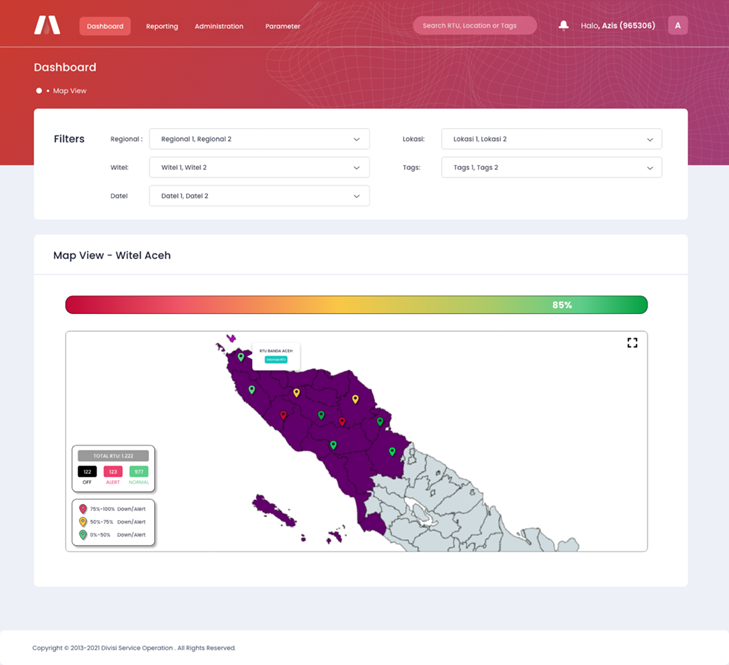 | 1 | Sistem dapat memfilter dan menampilkan peta informasi terkait RTU dengan visualisasi warna persentase alert port setiap wilayahnya |