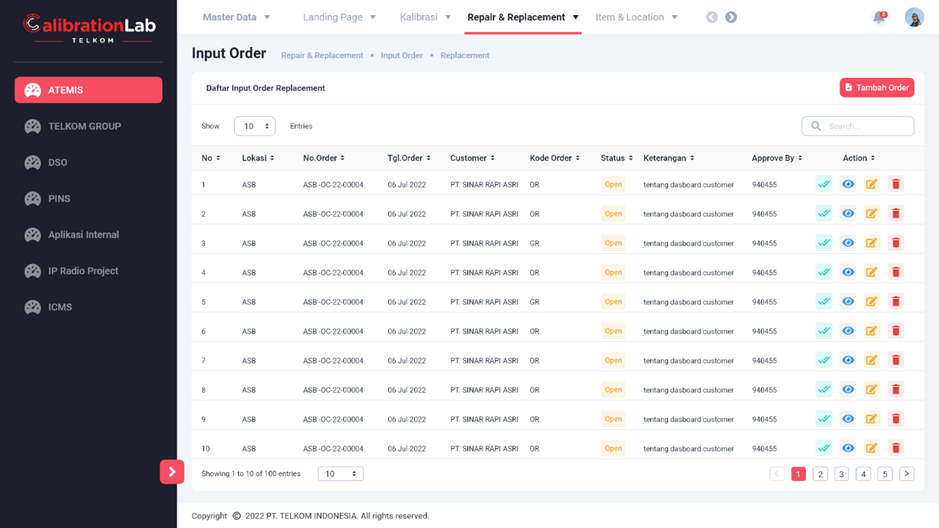 New Atemis adalah aplikasi utama yang digunakan oleh Divisi MSC (Managed Service Center) PT. Telkom Indonesia untuk mengelola berbagai aspek operasional terkait pelanggan, pesanan, suku cadang, dan pelaporan. Sistem ini berfungsi sebagai solusi end-to-end dalam mendukung layanan telekomunikasi yang dikelola oleh PT. Telkom, memastikan efisiensi dalam manajemen pesanan dan inventaris.